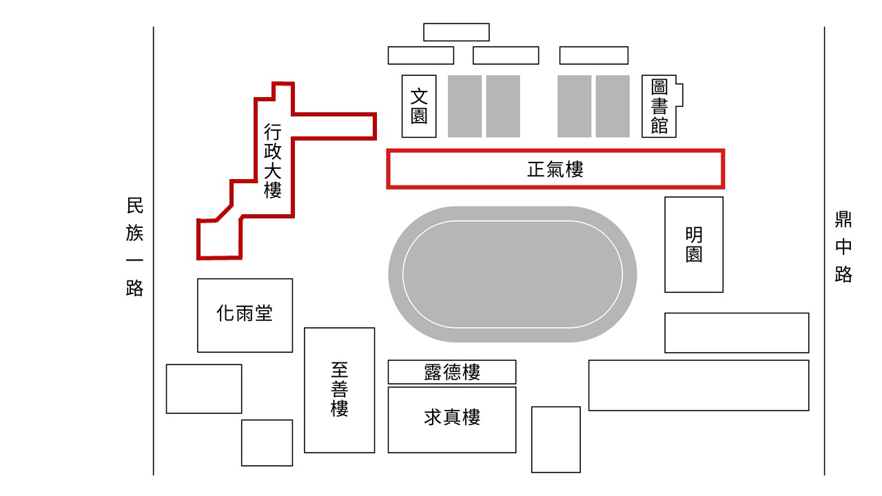 汽車:請由<民族路>校門或<鼎中路>校門進出。